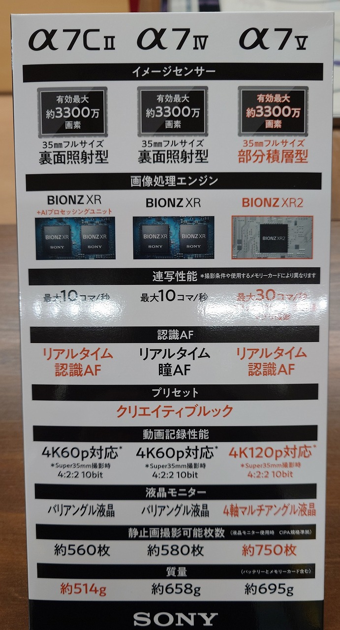 2025年12月4日 川幡 浩之 ソニー製品, カメラ関係 0 Comments Tweet もうすでに皆様の手元には情報が行き届いているとは思いますが・・・ 噂の商品が 発表されましたね・・・ 弊社店舗にも 媒体物が続々と届いております 機種別の変更点もわかりやすく 12月9日より 予約受付が始まります 発売記念キャンペーンも12月9日より始まりますよ!! Tweet